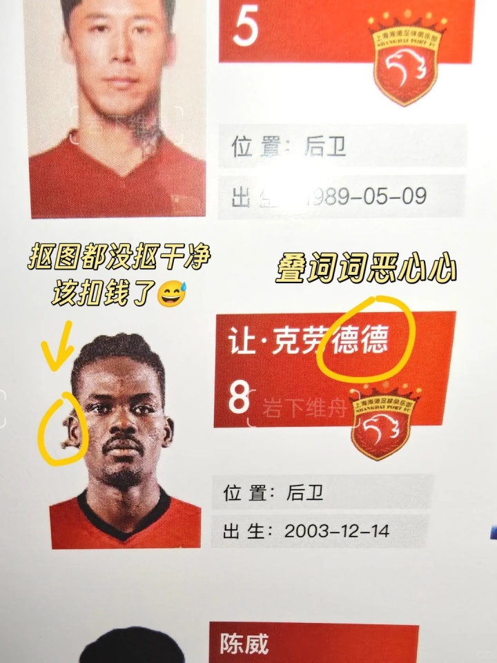 博主:今天拿到了昨天中国超级杯国安vs海港的观赛手册,应该是在主席台和包厢给领导们看的比赛信息,一翻到球员大名单那一页就蚌埠住了。