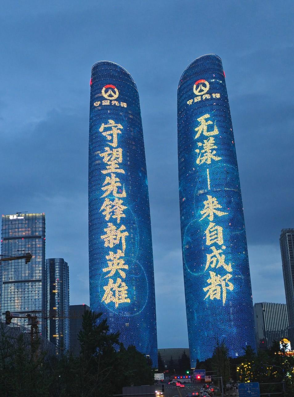 据了解,双子塔广告牌的投放价格约为3000人民币一分钟,此前《原神》、《守望先锋》等游戏都在双子塔投放过灯光秀广告。